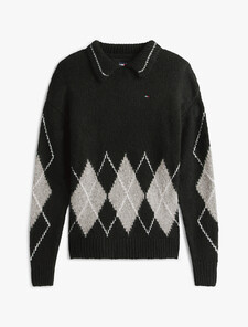 Argyle Oversized Polo Jumper With Alpaca