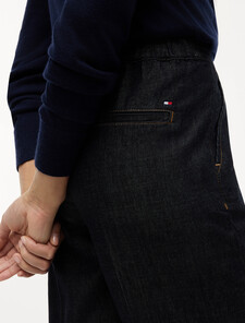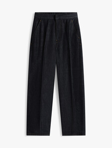 These denim pants are cut in a sculptural barrel shape from recycled cotton and lyocell. They feature an elastic waistband for comfortable, everyday wear.