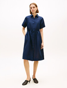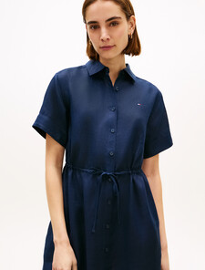 Crafted from pure linen, this shirt dress features a flattering elongated silhouette and a cinched waist for added definition, bringing a feminine touch to any ensemble.