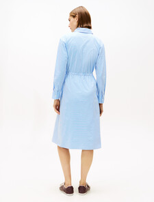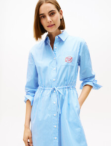Office-to-happy-hour styling comes effortlessly with this shirt dress, featuring timeless banker stripes. A script logo embroidery completes the look, whether worn solo or layered.