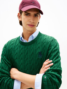 A timeless cable knit pattern brings rich texture to this crewneck pullover sweater in pure cotton, finished with signature Tommy Crest embroidery.