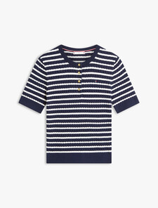 Crafted from soft pure cotton with fine-gauge cable-knit detailing, this short-sleeve jumper makes a perfect layer for transitional seasons.