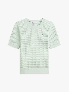 Fine Gauge Cable Knit Short Sleeve Jumper