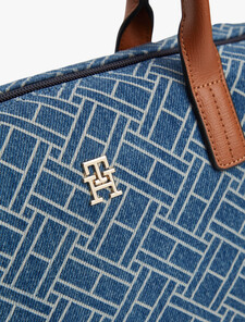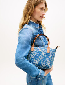 Crafted from rigid denim with a repeat flag motif, this compact tote bag takes a classic style and adds distinctive signature charm.