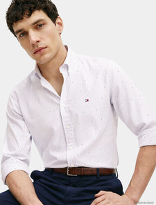 Crafted from breathable cotton poplin with Tommy Hilfiger Flex technology for enhanced comfort, this regular fit shirt features a refined fil coupé design, bringing elegance to your office ensemble.