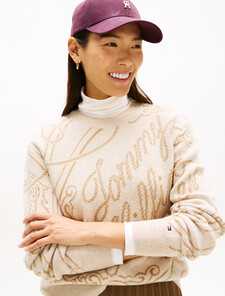 A new logo jacquard design defines this crewneck pullover sweater spun from a cozy and buttery cashmere blend. This sweater is made from 100% recycled materials.
