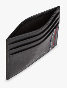 Streamline your out-and-about essentials with this sleek leather card holder, featuring a refined pebble-grain finish and stitched signature detailing.