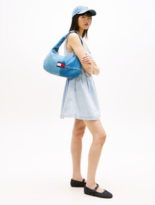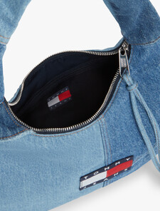 Crafted to a slouchy shape from a patchwork of rigid denim panels, this shoulder bag is full of retro charm.