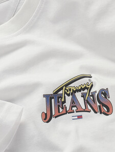 Channel retro vibes with this cotton jersey t-shirt featuring a colorful rendition of the Tommy Jeans logo.