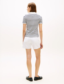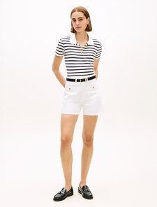 This slim-fitting polo shirt is a timeless piece, complete with a silky finish and gold-tone buttons showcasing embossed flag branding.