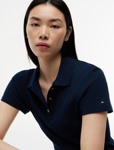 This slim-fitting polo shirt is a timeless piece, complete with a silky finish and gold-tone buttons showcasing embossed flag branding.