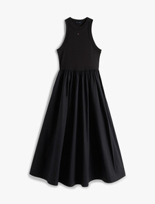 This maxi dress combines a sleek slim fit with a ribbed tank top silhouette for a modern take on a classic style.