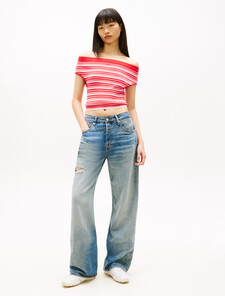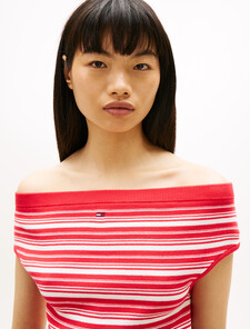 This pure cotton striped jumper puts a fresh spin on classic nautical-inspired style with its off-the-shoulder neckline and slim-fit shape.