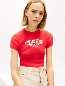 This ribbed stretch cotton tee is cut in a form-fitting slim silhouette, with a statement wavy flag graphic on the chest.